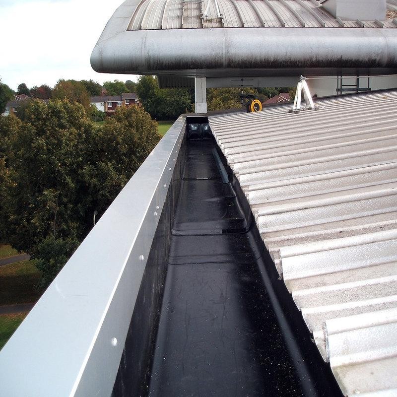 As calhas são canais de captação que em sua maioria são constituídos de aço galvanizado, que se trata de uma superfície preparada pelo processo de cobertura protetora, feita a base de Zinco para evitar corrosões.